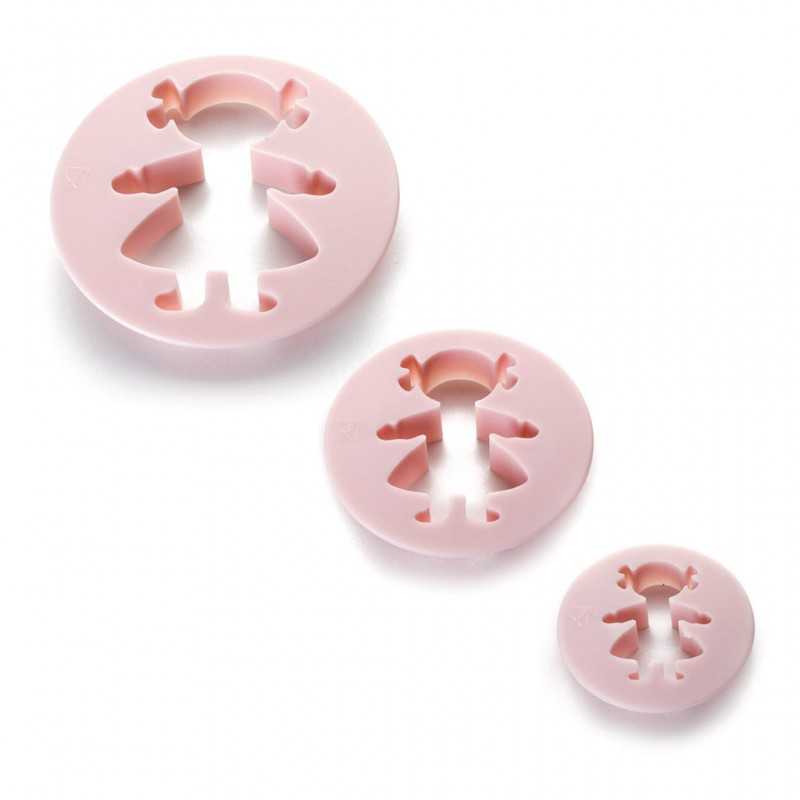 Cortador de Galletas Niña IBILI Set de tres cortadores para galletas o para fondant de niña, son tres cortadores de diferentes tamaños. Si haces galletas, puedes decorarlas como quieras y regalar para fiestas y primeras comuniones. Están fabricados en plástico de alta calidad. Medidas: 3 + 5 + 7.5cm