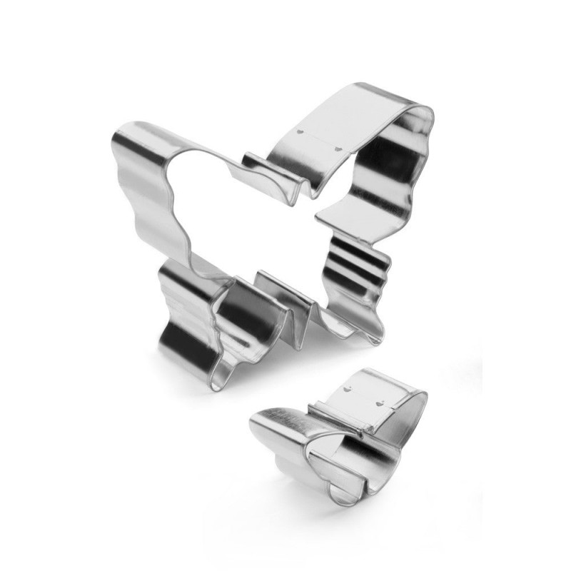 Set 2 corta galletas IBILI de mariposa, estupendo set de 2 cortadores de galletas metálico con la forma de mariposa de diferente tamaño. Ideal para cortar masa de galletas y fondant. Fabricado en metal estañado. Medidas: 8.2x6 cm y 4.1x2.5 cm