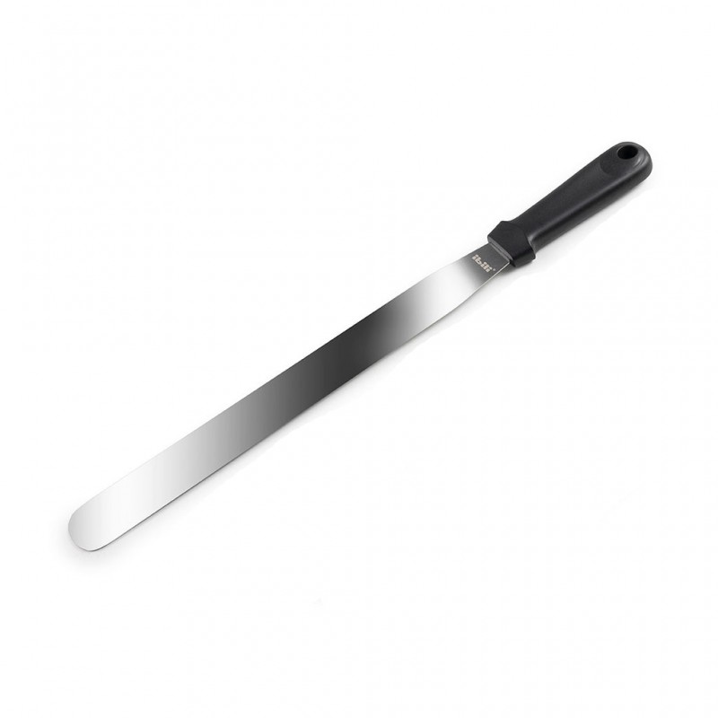 Espátula de cocina recta marca IBILI, está espátula es recta, ideal para repostería. ES una espatula profesional y ECO, ya que su mango es de Polipropileno y es libre de BPA.La espátula es de acero inoxidable