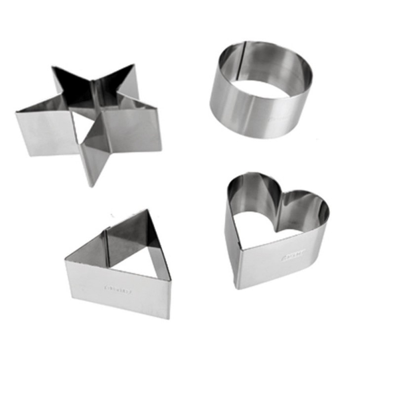 Timbal / Aros para emplatar IBILI. Utensilio de acero inoxidable con formas variadas, ideal para emplatar o para repostería. Juego de 4 aros.