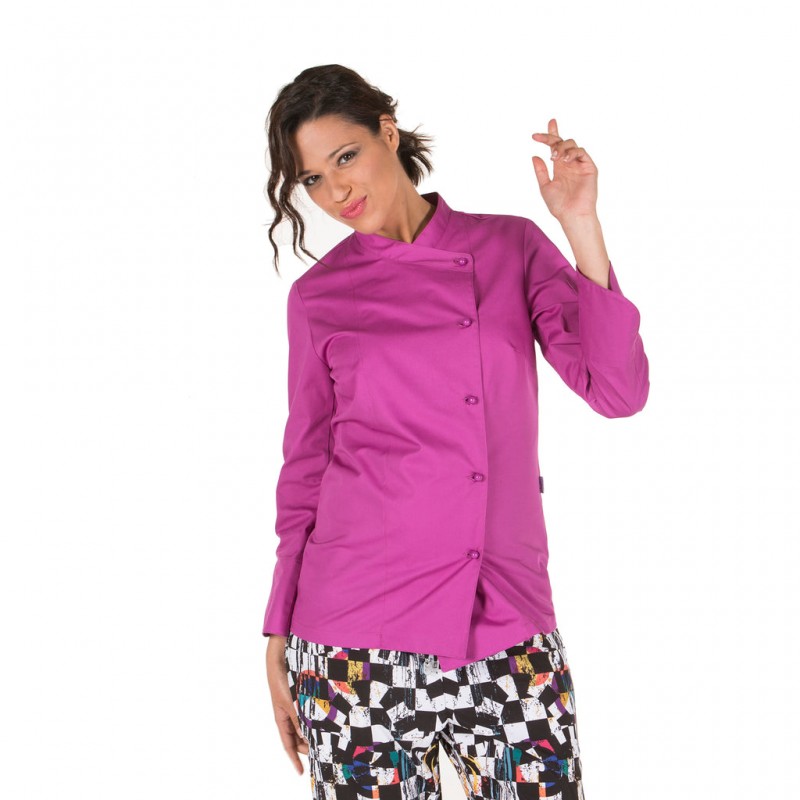 Filipina Chef Mujer Malva Filipina para mujer chef o cocinera.Con botones de chupónBolsillo en la manga. Pinzas en sisa y espalda.Esta fabricado en SARGA tela de 65% poliéster - 35% algodón 200 gr./m2Máximo confort y durabilidad, no se alteran los colores tras los lavados, gran resistencia al pilling por el roce y de tacto suave.Tela, diseño y confección Española.