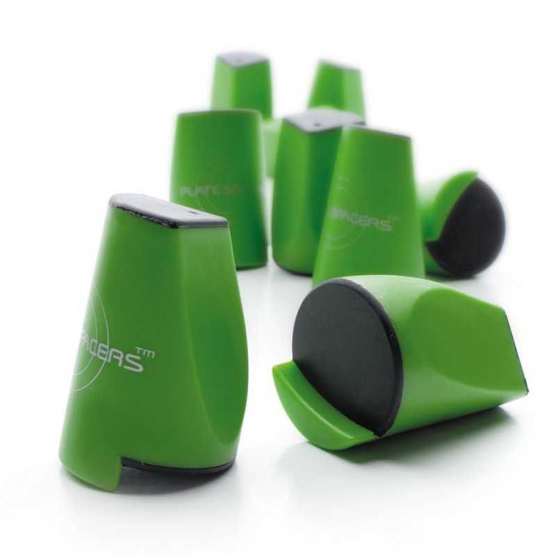 Incluye 9 espaciadores que permiten apilar 4 platos consiguiendo una altura entre cada plato de 4,1 cm. Están fabricados en plástico y goma antideslizantes de excelente calidad.